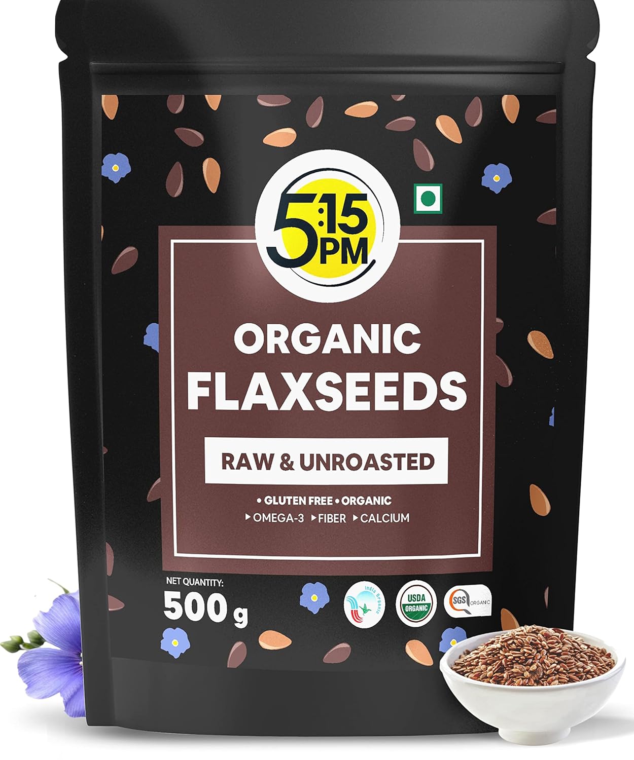 5:15PM 100% Certified Organic Flaxseeds - Raw & Unroasted Flax Seeds for Eating - 500g (FROM IND...
