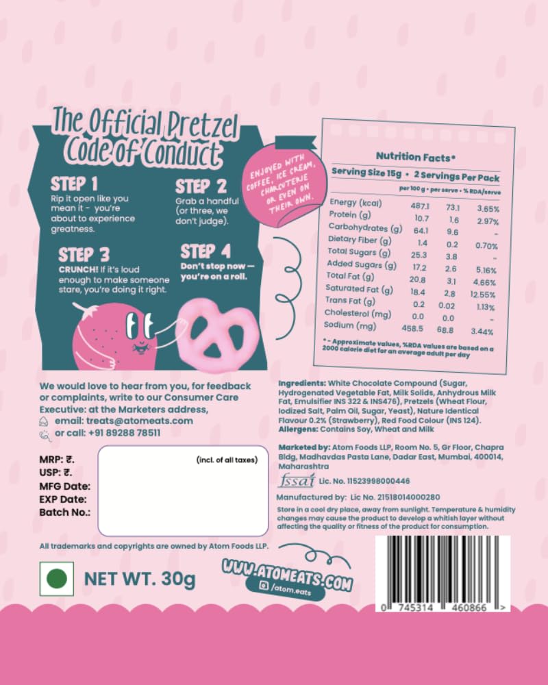 Atom Eats | Strawberry Pretzels 30g | Pack of 1 | Mini Pretzel Knots | Luxurious Strawberry Flavoure...