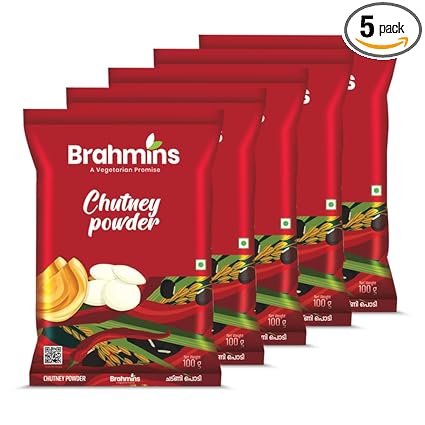 Brahmins Chutney Powder – A Vegetarian Promise| Instant Chutney Podi with Black Gram, Chilly, & Rice Powder| 100% Vegetarian| 100g x 5| 500 gms (FROM INDIA FAAZ) | Colombo Mall | Colombo Mall