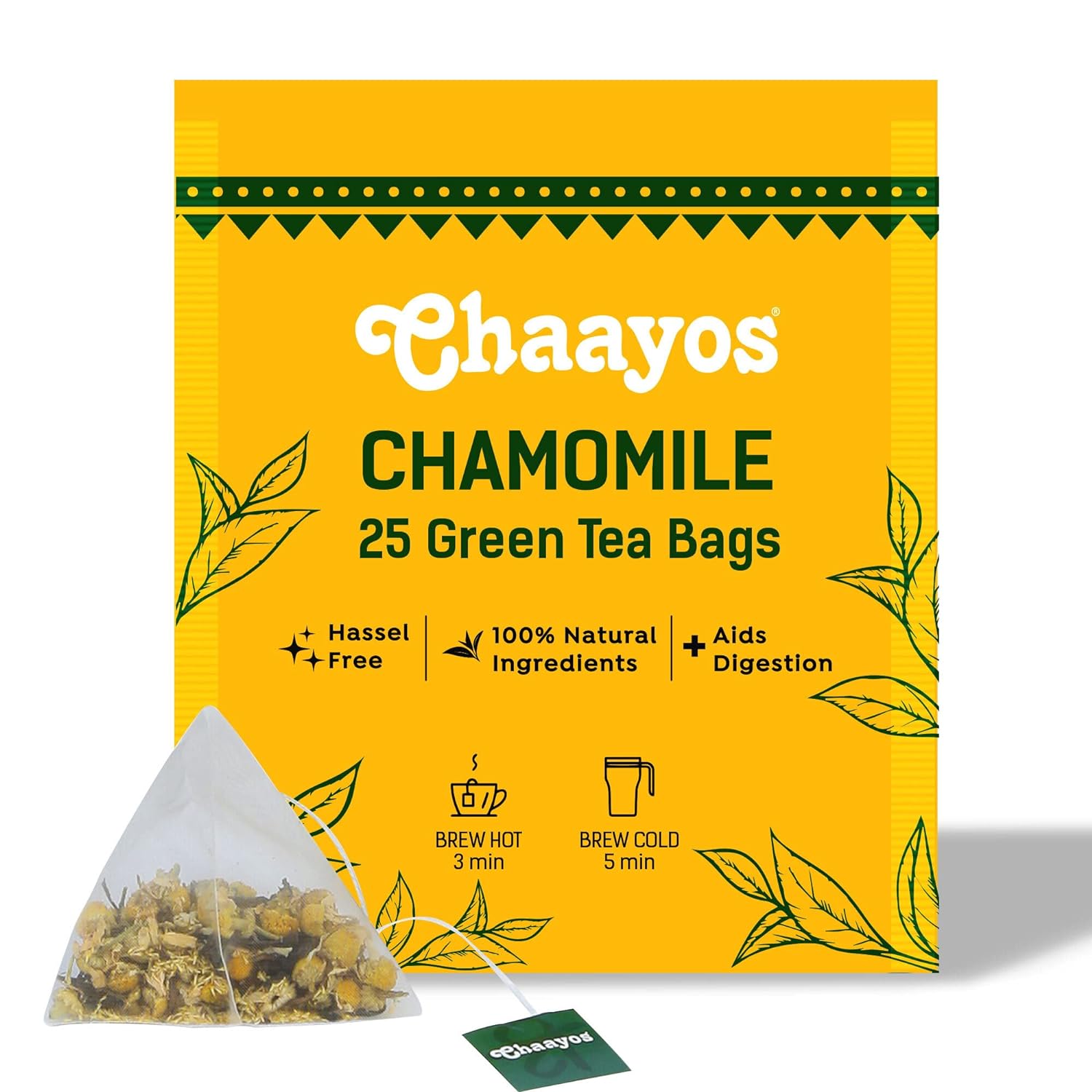 Chaayos Chamomile Tea - 25 Chamomile Green Tea Bags | Chamomile and Green tea leaves | Contains Pure...