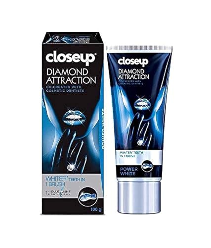 A revolutionary toothpaste range co-created with cosmetic dentists, closeup diamond attraction uses blue light technology to give you whiter teeth in just 1 use