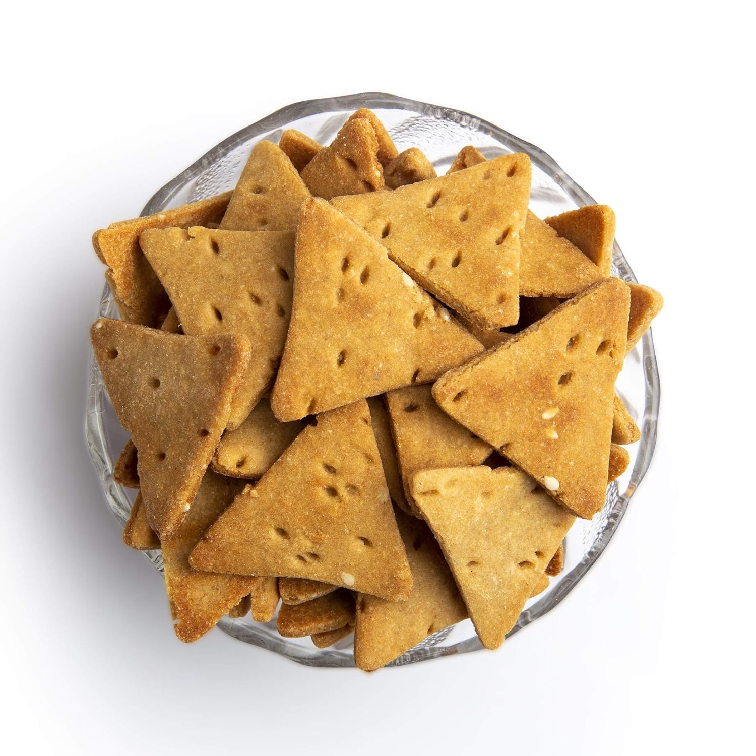 Enjoy snacking guiltfree. Bite sized triangular papdi - An ideal tea time snack/ chips/ cracker with the goodness of pure gur and finest quality sesame seeds.
