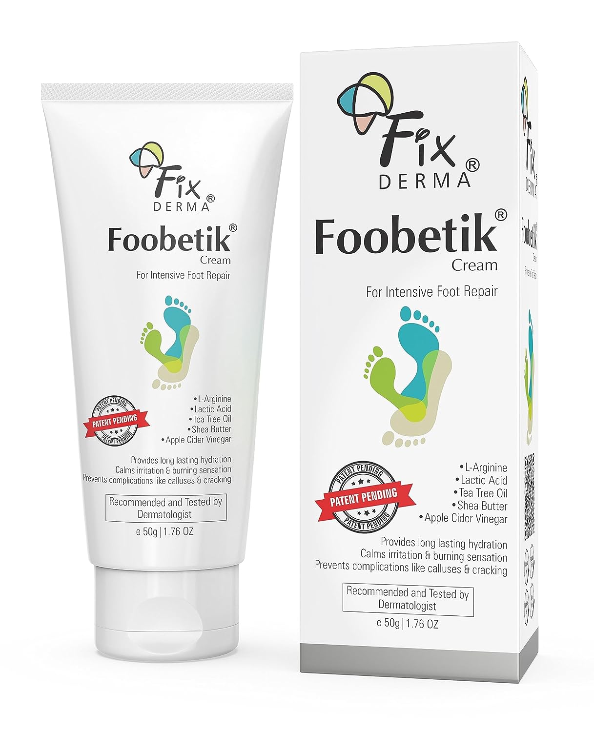 KEY INGREDIENTS: L-Arginine, Lactic acid, Apple cider vinegar, Tea tree oil, Urea, Shea butter; DIRECTIONS FOR USE: Clean the feet thoroughly to remove all dirt and debris and dry well. Apply Foobetik cream on the feet in sufficient amount and massage gently till it get absorbed. For best results, apply daily at night time<br>