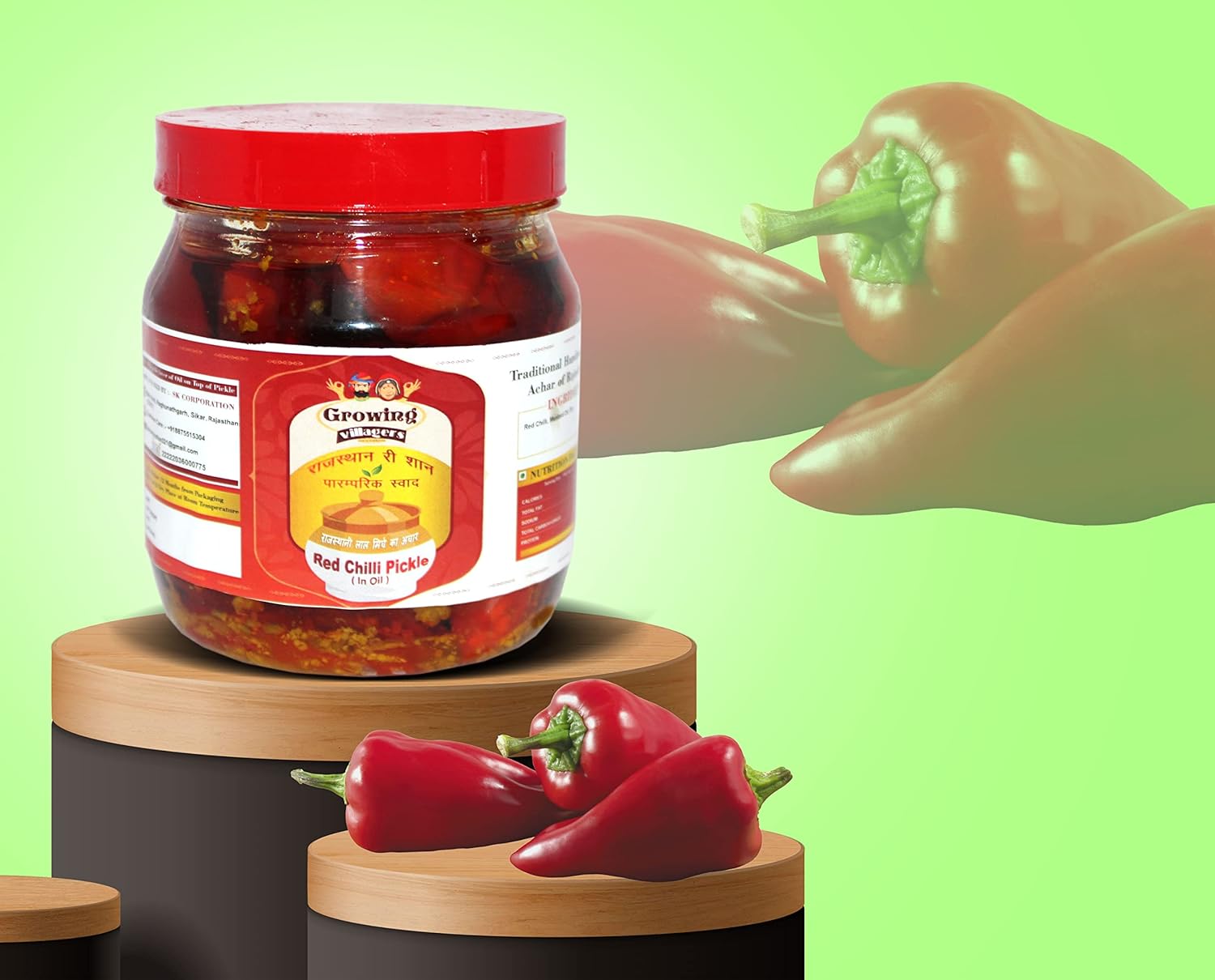 Growing Villagers Red Chilli Pickle Homemade Desi Lal Mirchi Ka Achaar | Rajasthani Traditional Spicy Masala Stuffed Red Chilly Pickle With Less Oil | Jar Of 400 Grams FROM INDIA (SAM) | Colombo Mall | Colombo Mall