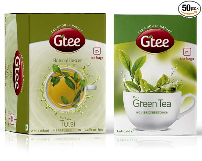 GTEE Green Tea Bags - Regular & Tulsi Tea Bags, 25 Tea bags (Pack of 2) SAB