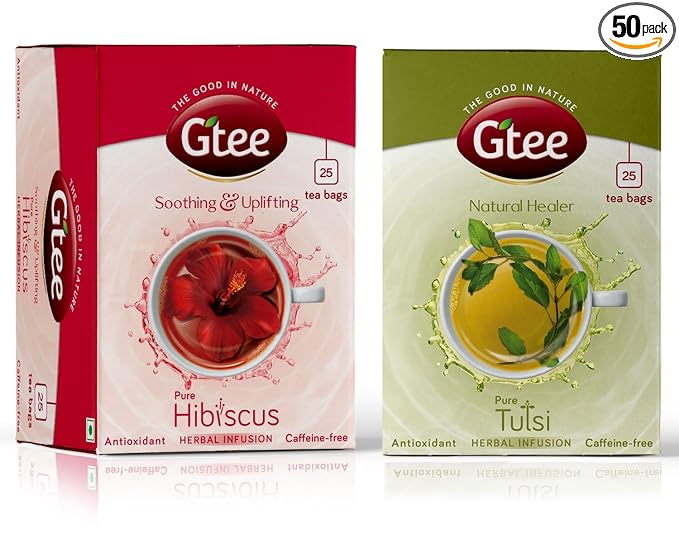 GTEE Hibiscus Tea Bags & Tulsi Tea Bags, 25 Tea bags (Pack of 2) (FROM INDIA SAB)