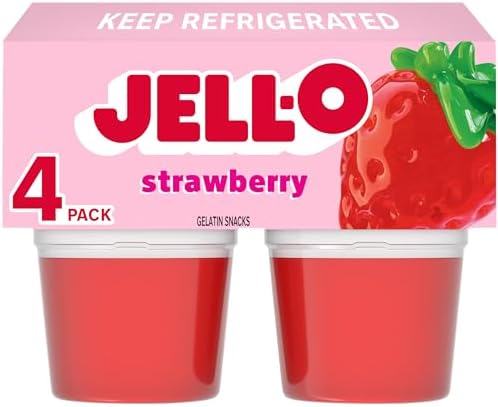 Jell-O Original Strawberry Refrigerated Red Jello Cups Gelatin Snack (4 ct Cups) FROM DUBAI (SAM)