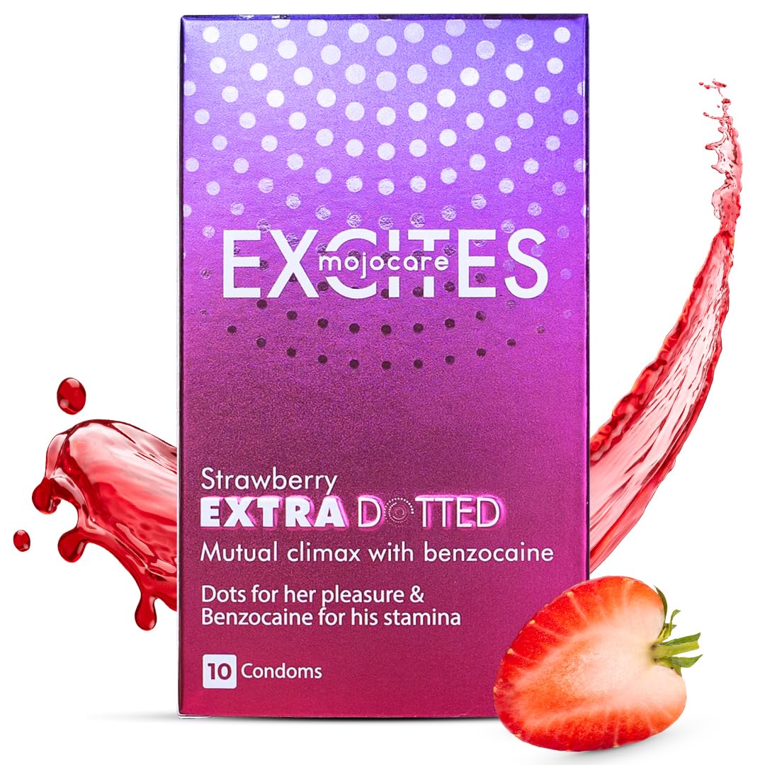 Mojocare Excites Extra Dotted Strawberry Condoms for Men - 10 Sheets | Enhanced Stimulation | Improve Endurance| Extra Lubrication | Strawberry Flavor | 598 Dots Pack of 1 | Colombo Mall
