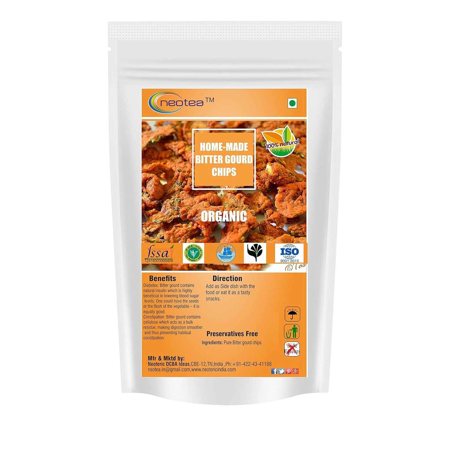 Neotea Organic Home Made Bitter Gourd Raw Chips Indian Authentic Healthy Snacks 250 gm