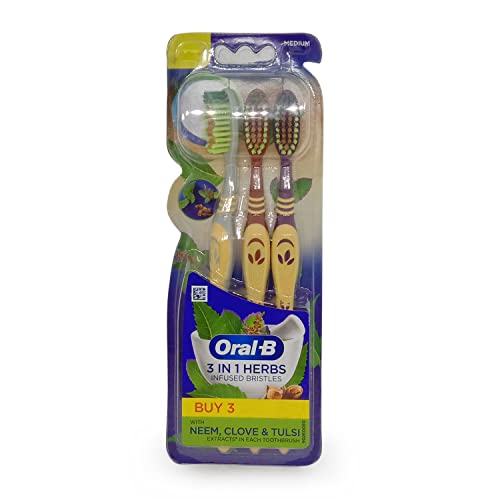 Oral-B 3 in 1 Herb Infused Bristles Toothbrush - Pack of 3 (Medium) FROM INDIA (SAM)