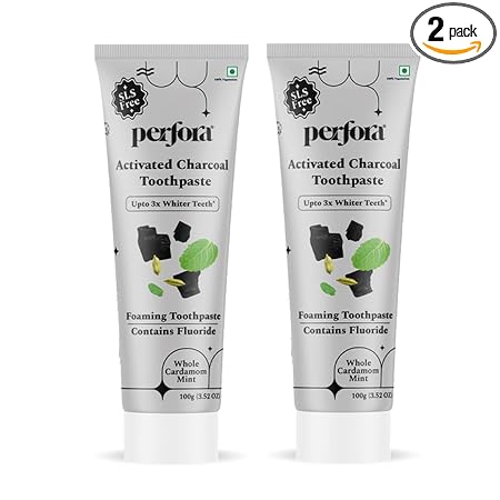 Perfora Activated Charcoal Toothpaste - 100g x 2 | SLS & Titanium Dioxide Free | Bamboo Charcoal For 3x Whiter Teeth | Enamel Safe Teeth Whitening Toothpaste for Men & Women | Cardamom Mint | Colombo Mall | Colombo Mall