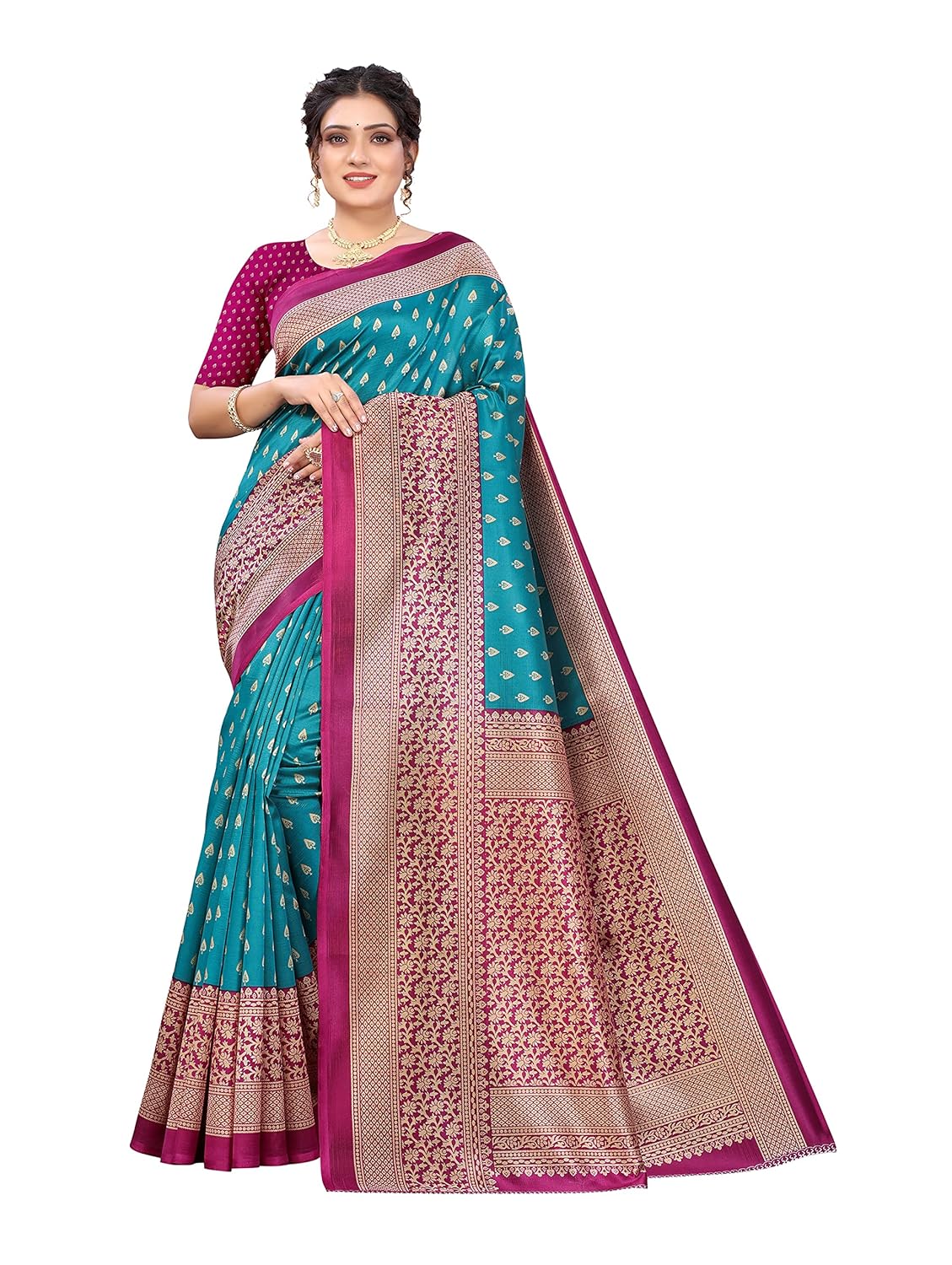 PISARA Women's Art Silk Printed Saree With Unstitched Blouse Piece