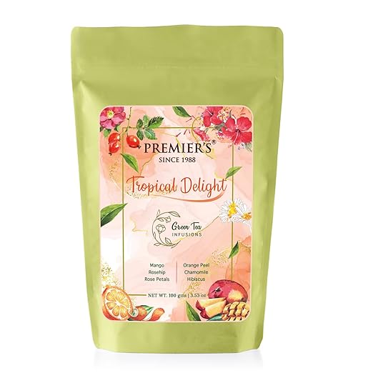 Premiers Tropical Delight, Green Tea Infusions with Mango Flavour, Loose Leaf Tea with Real Ingredients, 100 Gms, 50 Cups, Low Caffeine Tea and Herbs (FROM INDIA SAB) | Colombo Mall | Colombo Mall