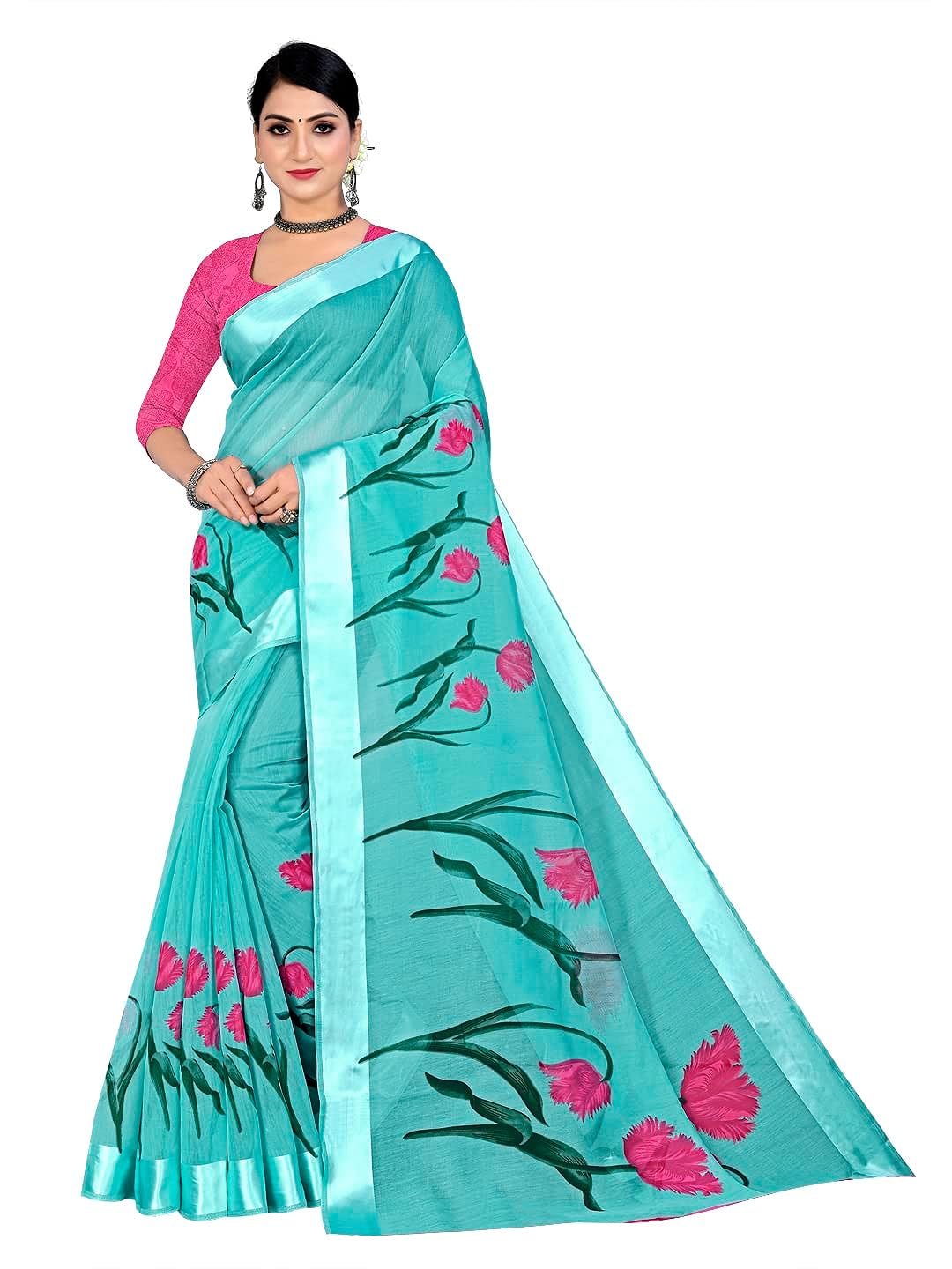 Rekha Maniyar Women's Floral Pattern Cotton Slub Saree With Unstitched Blouse Piece (JAGRUTI)B | Colombo Mall | Colombo Mall