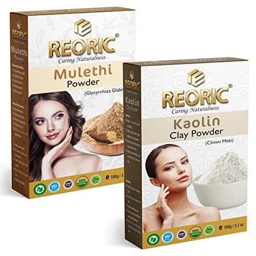 Reoric organic mulethi powder for face and kaolin clay powder|kaolin clay powder for face |mulethi powder for face |mulethi powder organic |licorice root powder(200g, Pack of 2) (FROM INDIA)SAB
