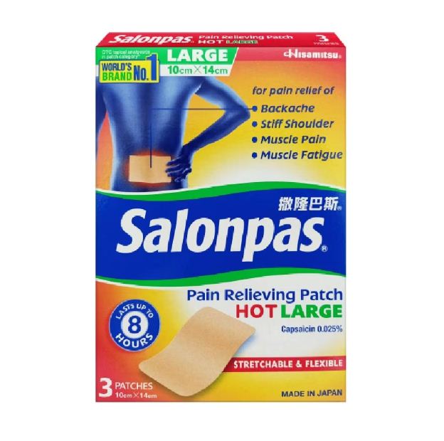 Salonpas Pain Relieving Patch HOT LARGE Stretchable & Flexible 3 Patches. | Colombo Mall | Colombo Mall