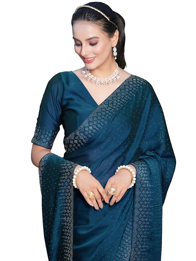 Satrani Women's Georgette Solid Hot Fixing Saree with Unstitched Blouse Piece