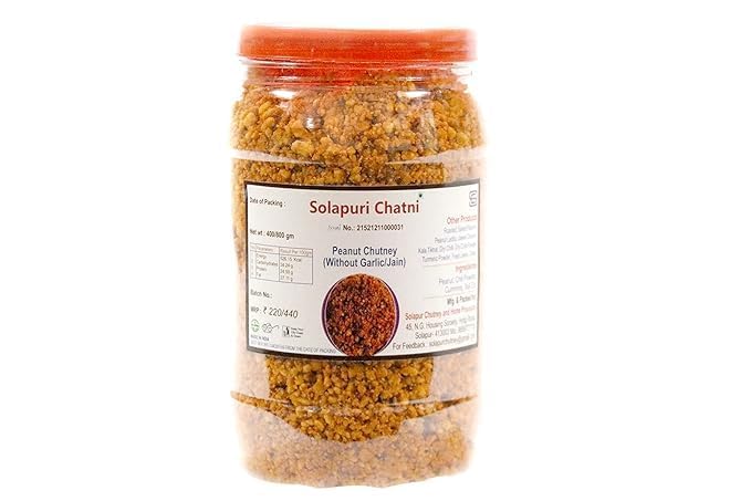 It is a A hand pounded blend of roasted peanuts, red chilli powder, garlic & cumin our peanut chutney is prepared in the same traditional way using perfectly roasted peanuts as has been done for ages in the Solapur region of Maharashtra. delicious condiment which has great crunch and flavour .