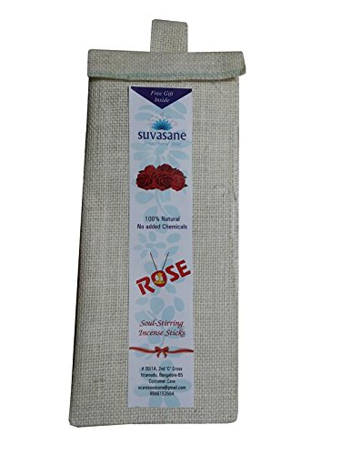 Suvasane? Rose Fragrance Pure Natural Agarbatti with no Charcoal, No Added Chemicals, Natural and Herbal, 24 Sticks, Reddish Brown 9" Sticks in Jute Ba
