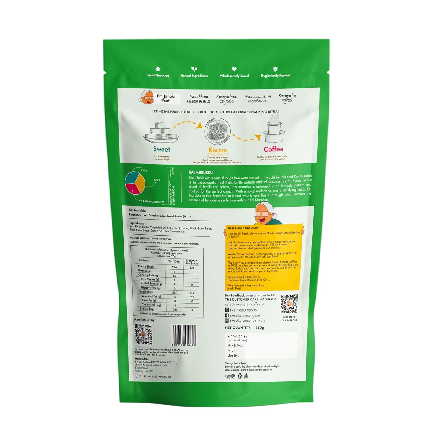 Sweet Karam Coffee Kai Murukku - 150grams | No Palm Oil & Preservatives | Authentic South Indian Han...