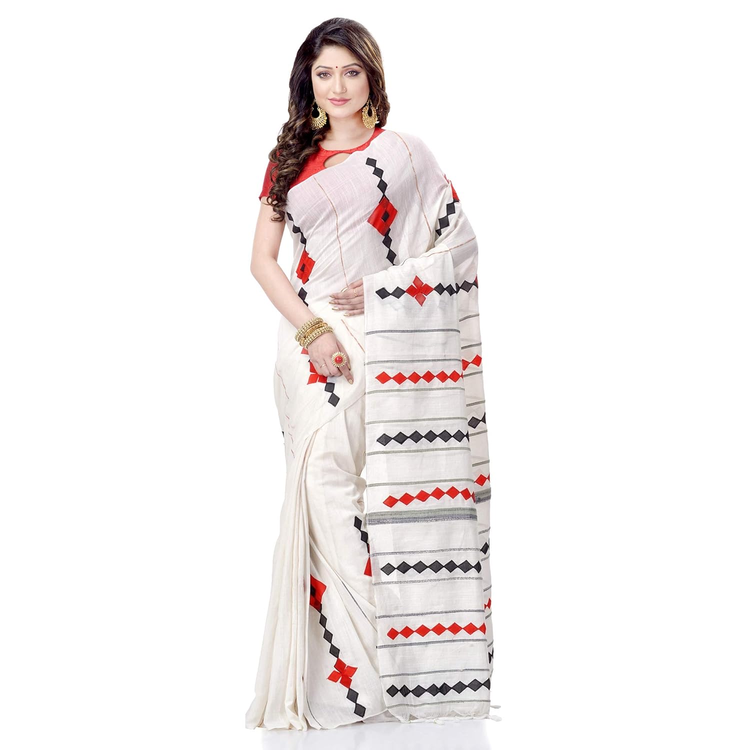 TANTLOOM Women`s Bengali Khesh Pure Cotton Handloom Saree Diamond Designed With Blouse Piece | Colombo Mall