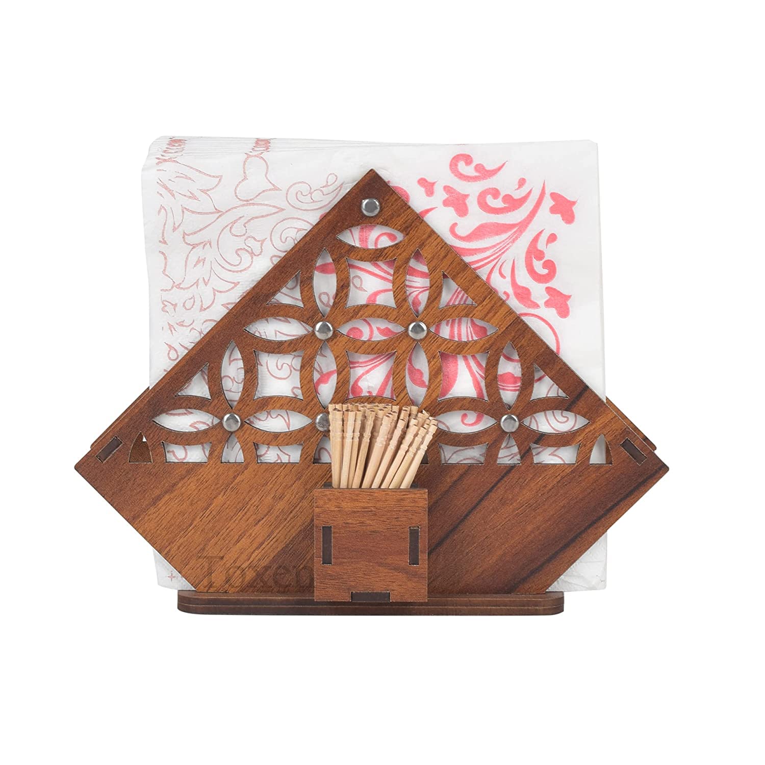 Toxen Decorative Wooden Tissue Paper Rack Napkin Holder for Dining Table, Tissue Paper Stand (H737)