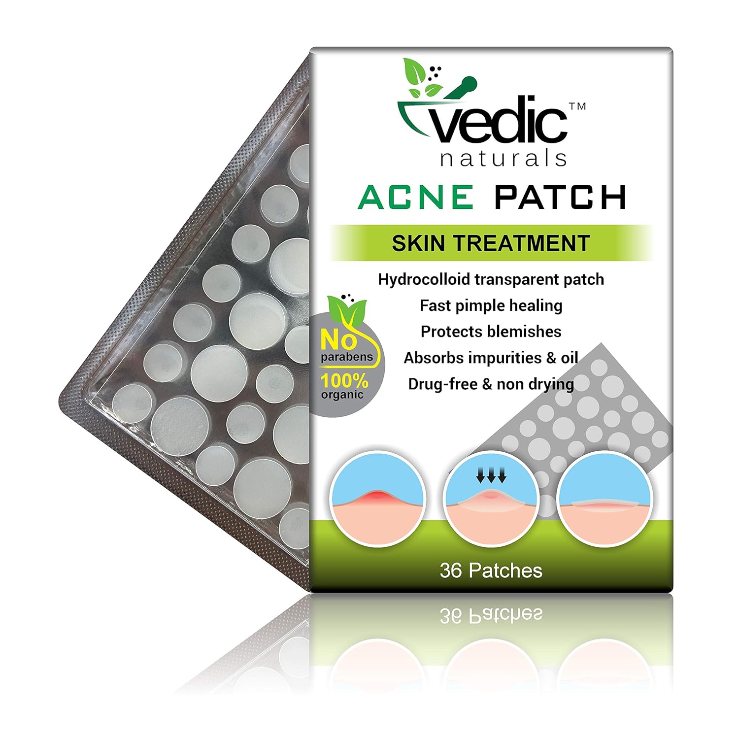 Vedic Naturals Acne Pimple Patches For Face & Skin Treatment Cover With 100% Hydrocolloid Transparent Patch, Fast Pimple Healing, Drug Free, Non Drying & Water Proof - 36 Patches - Pack Of 1 | Colombo Mall | Colombo Mall