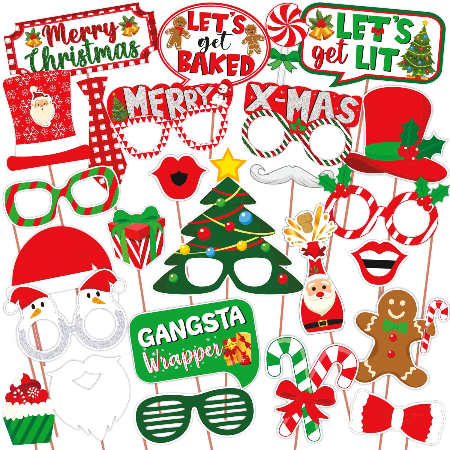 WOBBOX Christmas Decoartion Photo Booth Party Props, Red & Green (26 Pcs) Christmas Decorations Items, Christmas Decorations | Colombo Mall